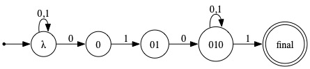 In words, L1 contains precisely those strings over the alphabet {0,1} having 010 as a substring and 1 as a suffix.