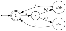 A few students included a transition from state a back to state λ on symbol a, making the λ transition from state a to state a/ab unecessary. However, this tradeoff resulted in the number of non-λ transitions being six, one over the stated limit!